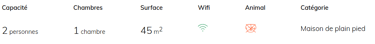 Composition : Gîte au rdc en mitoyenneté avec l'habitation des propriétaires (indépendance totale sans vis-à-vis). Chauffage central gaz + poêle à bois (bois fourni). Lave-linge dans local immédiatement attenant au gîte. Cuisine, séjour-salon, 1 chambre (lit 2 p. en 160x200cm), salle d'eau (douche), wc indépendant. Terrasse + jardin + parking ombragé + local vélo privatifs.